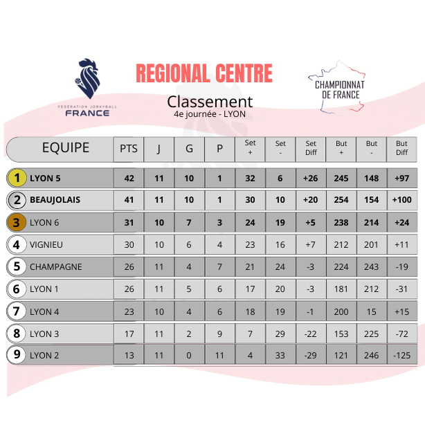 4ème journée Regional Centre : le classement
